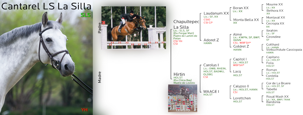 Su padre, Chapultepec La Silla (ex Fergar Mail) Considerado la revelación en Francia en el 2002. Recibió el premio AWARD OF MERIT por ser el padrillo más joven con hijos aprobados como sementales. Padre de destacados caballos de salto tales como: Lamm de Fetan, Chela LS La Silla, Chairman LS, Clásica LS, Singular LS,entre otros...
