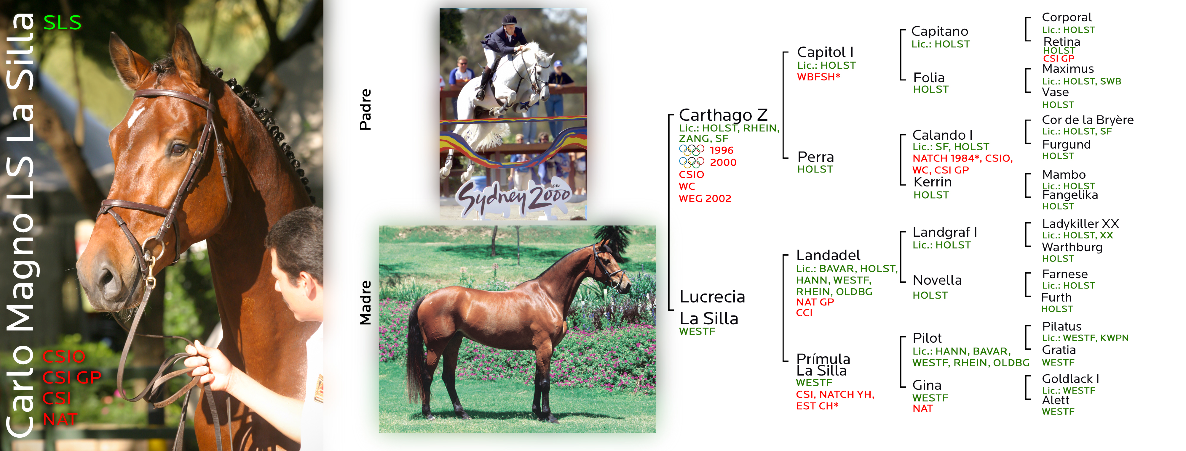 Su padre, Carthago Z, semental Holsteiner, hijo de Capitol I,el número dos del ranking internacional 1997/1998 de padrillos de salto, y descendiente de una de las mejores líneas Holstein.